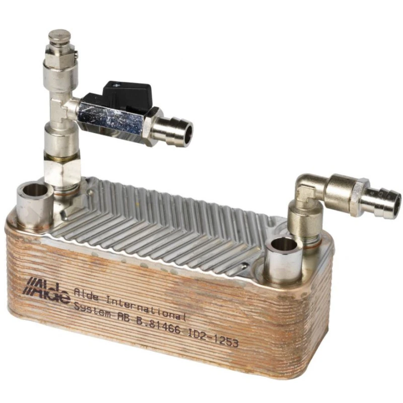 L’échangeur a plaque ALDE constitue un véritable alternative aux cumulus traditionnel que l’on peut retrouver dans les bateau & van aménagé. La production d’eau chaude est réalisée en instantanée, l’échangeur ne stock donc pas l’eau sanitaire & offrira un encombrement particulièrement réduit !
