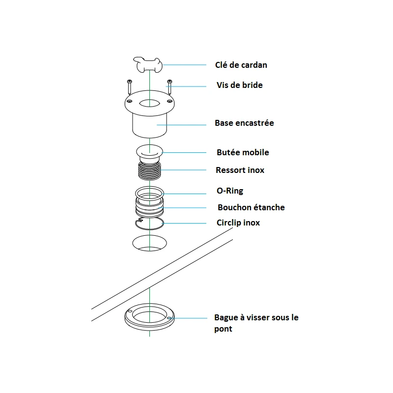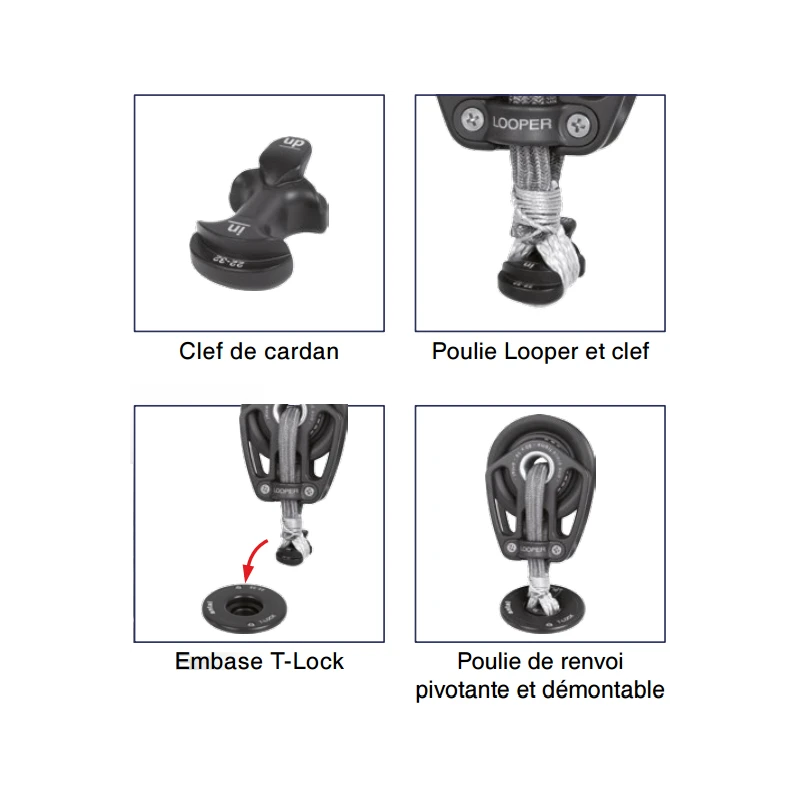 Résolument dans l’air du temps, ANTAL propose ici un produit fini d’une grande simplicité et très fiable. La cadène à encastrer T-Lock ou pad-eye de pont amovible consiste en une platine aluminium anodisé haute résistance à monter à travers le pont et qui accepte un cardan ou une clé de cardan type os de chien et permet ainsi la mise en place de tout type de poulie ou anneau faible friction sur cordage Dyneema, Snap loop ou manille textile. Idéal pour la fixation de poulies de renvoi de bras de spi ou de tout type d’accastillage sur le pond du bateau, cette cadène à axe amovible tournant sur 360° haute technologie résiste à des charges allant de 2200 à 3500 Kg et permet un changement d’accastillage, poulie ou anneau faible friction en un tour de main. Un véritable équipement de pont haute technologie largement diffusé dans le monde de la course au large, mini transat, IMOCA et tour du monde aujourd’hui disponible pour tout plaisancier soucieux d’équiper son bateau d’accastillage actuel!