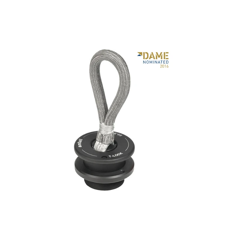 Résolument dans l’air du temps, ANTAL propose ici un produit fini d’une grande simplicité et très fiable. La cadène à encastrer T-Lock ou pad-eye de pont amovible consiste en une platine aluminium anodisé haute résistance à monter à travers le pont et qui accepte un cardan ou une clé de cardan type os de chien et permet ainsi la mise en place de tout type de poulie ou anneau faible friction sur cordage Dyneema, Snap loop ou manille textile. Idéal pour la fixation de poulies de renvoi de bras de spi ou de tout type d’accastillage sur le pond du bateau, cette cadène à axe amovible tournant sur 360° haute technologie résiste à des charges allant de 2200 à 3500 Kg et permet un changement d’accastillage, poulie ou anneau faible friction en un tour de main. Un véritable équipement de pont haute technologie largement diffusé dans le monde de la course au large, mini transat, IMOCA et tour du monde aujourd’hui disponible pour tout plaisancier soucieux d’équiper son bateau d’accastillage actuel!