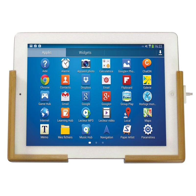 BAMBOO Support universel Tablette / ipad permet de ranger contre un mur tout type de tablette ou ipad et écran tactile et de le brancher.