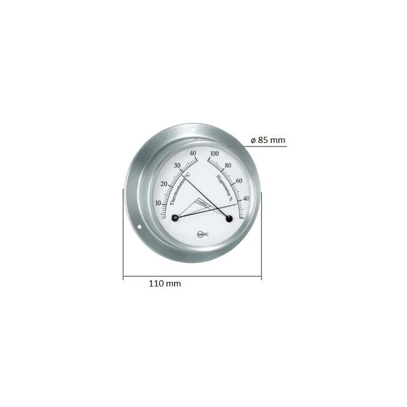 CONFORIMETRE (thermomètre & hygromètre) à aiguille, gamme SKY, dela marque BARIGOavec cadran en verre de 85 mm de diamètre.