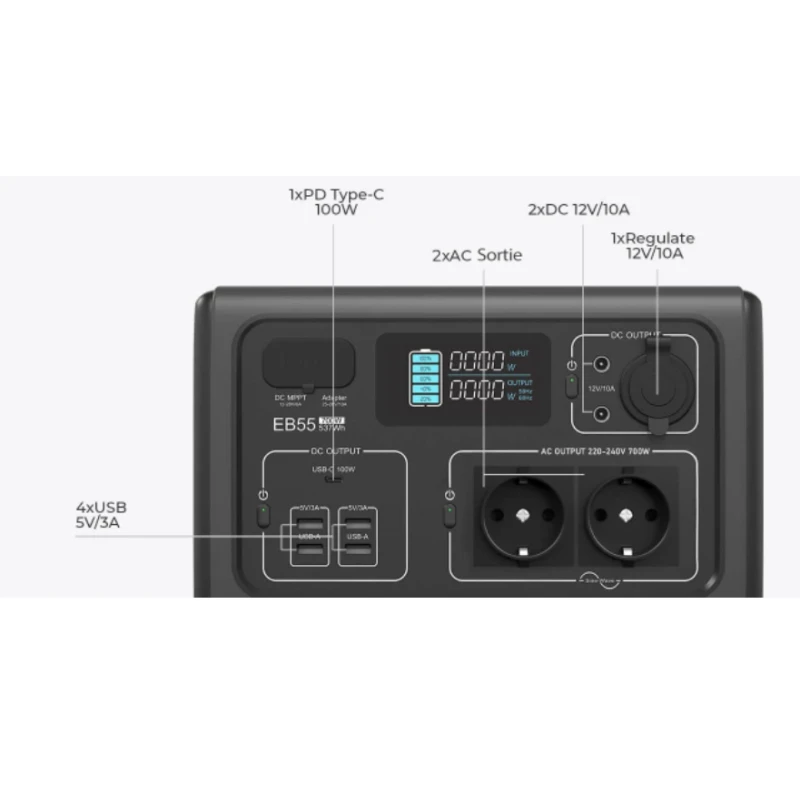 Caractéristiques techniques de la batterie nomade BLUETTI EB55 :