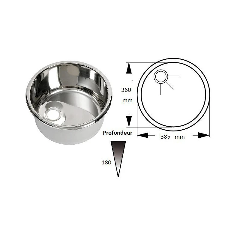 Evier rond en INOX poli miroir, pour cuisine de bateau, fourgon aménager et camping car.