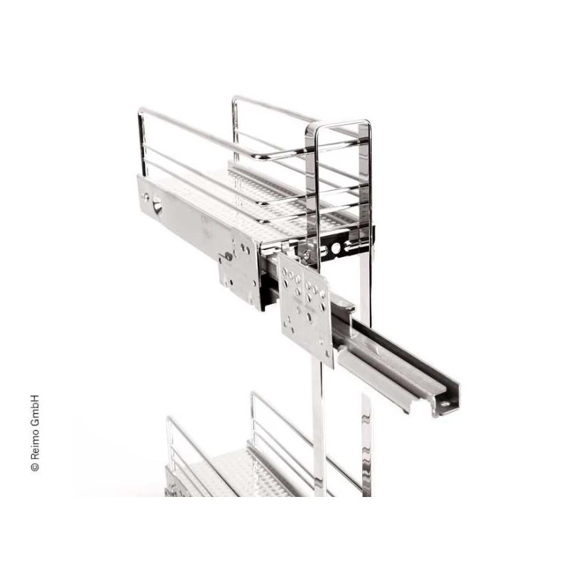 Conçu pour une fixation en bout de meuble (fixation à droite uniquement), cette extension de meuble est livré avec deux étages montés sur un cadre avec sur coulisseaux à billes permettant aux étages d’avancer et de ce reculer. Une nouvelle fois donc, CARBEST, la marque Allemande d’équipement pour camping-car et fourgon aménagé propose une solution simple et pratique pour exploiter au mieux les petits espaces.