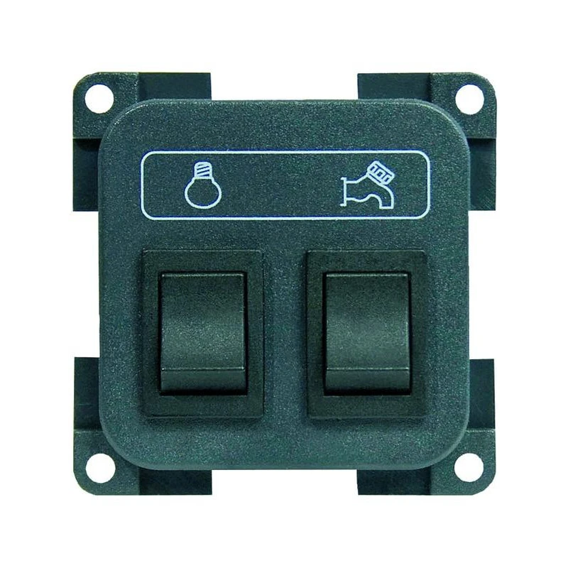 Interrupteur double 12V CBE, très astucieux, il est conçu pour les petits bateaux et les fourgons aménagés qui n’ont pas de tableau électrique.