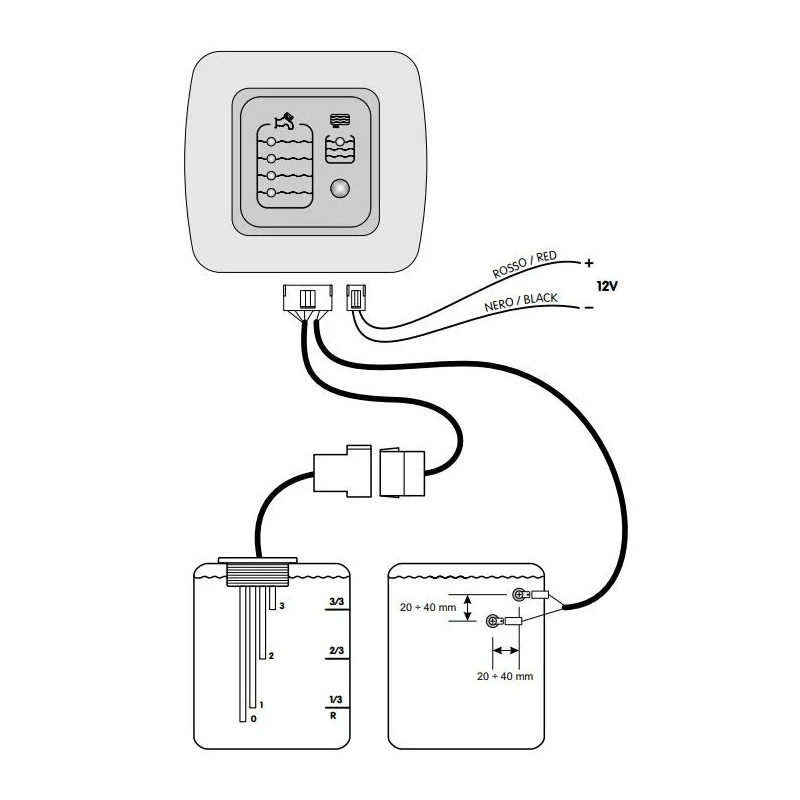 Kit sonde indicateur de niveau pour eau potable : Indicateur + sonde + câblage, pour réservoirs et cuves des bateaux et camping-cars.