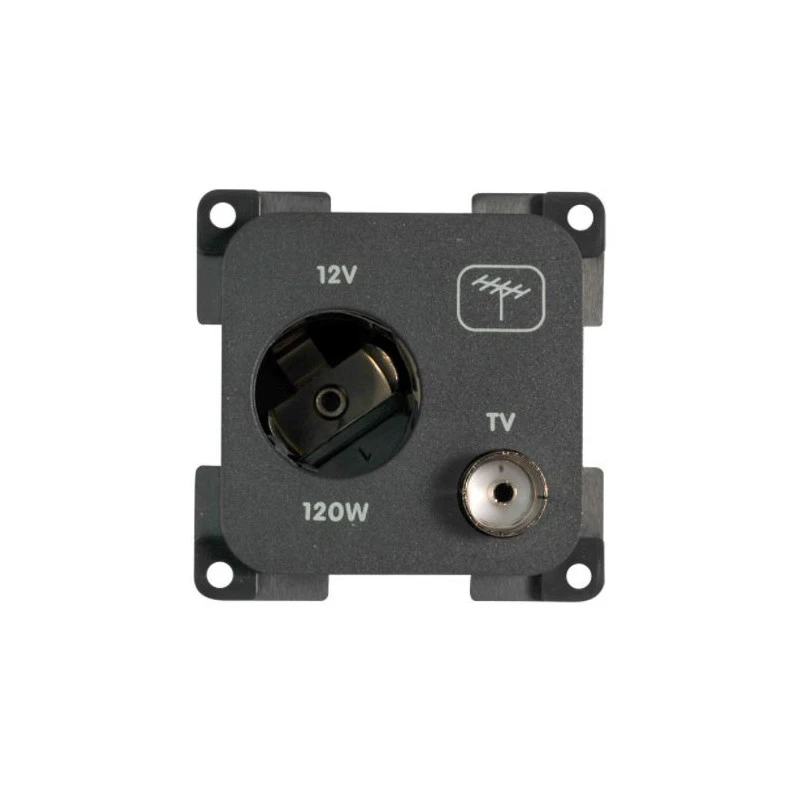 Prise multifonction murale à encastrer, CBE Presto 10000, prise femelle 12V type allume-cigare et prise femelle antenne TV pour camping-car bateau et caravane.