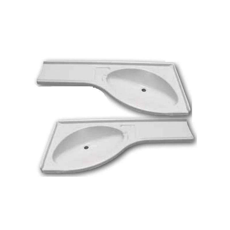 Evier, lavabo d’angle encastrable avec retour en plastique résistant PST blanc pour l’aménagement de la salle de bain camping-car et fourgon aménagé.