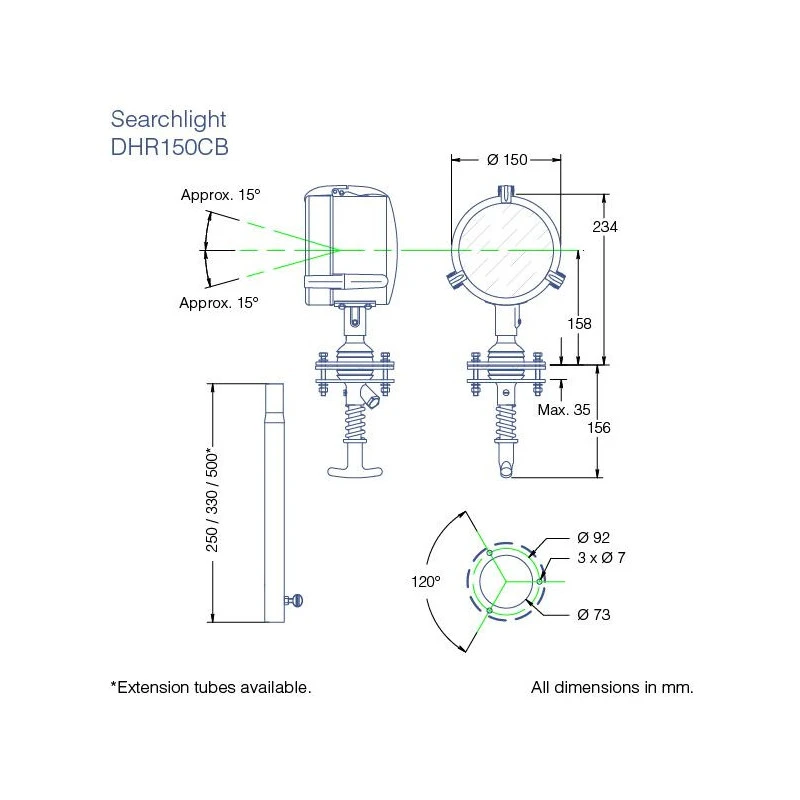 Caractéristiques du projecteur de route pour bateau DHR150CB :