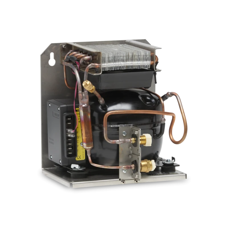 Le groupe froid DOMETIC Coldmachine CU 86 dispose d’un condenseur horizontale pour évacuer la chaleur produite par le haut ! Ce puissant compresseur est idéal pour les grandes glacières en voilier & camping-car.