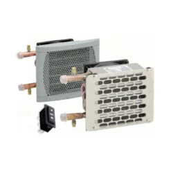 Ici EBERSPÄCHER propose la version standard de l’aérotherme Hélios 2000, avec finition grille aluminium ou plastique blanche, d’une puissance max de 2000 W l’Hélios diffusera la chaleur produite par le chauffage et acheminé par le liquide caloporteur contenu dans la chaudière.