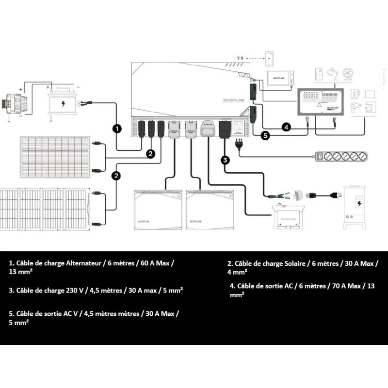 - Facilité d’installation : Le Kit Energy ECOFLOW est prévu pour s’installer en Plug & play, grâce au câblage livré avec connecteur rapide. Vous évitez donc l’étape fastidieuse de câblage avec sertissage de cosses etc..