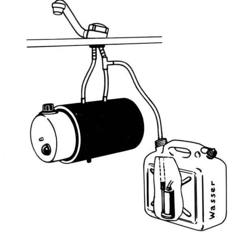 Le Boiler ELGENA KB 6 est un chauffe-eau électrique 12 V 200 W spécial pour fonctionnement avec pompe immergée dans le fourgon aménagé, camping-car et bateau.
