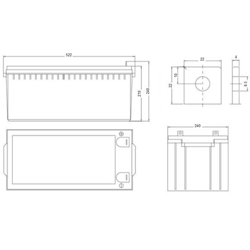 Caractéristiques techniques batterie AGM 12 V 220 Ah ENERGIE MOBILE :