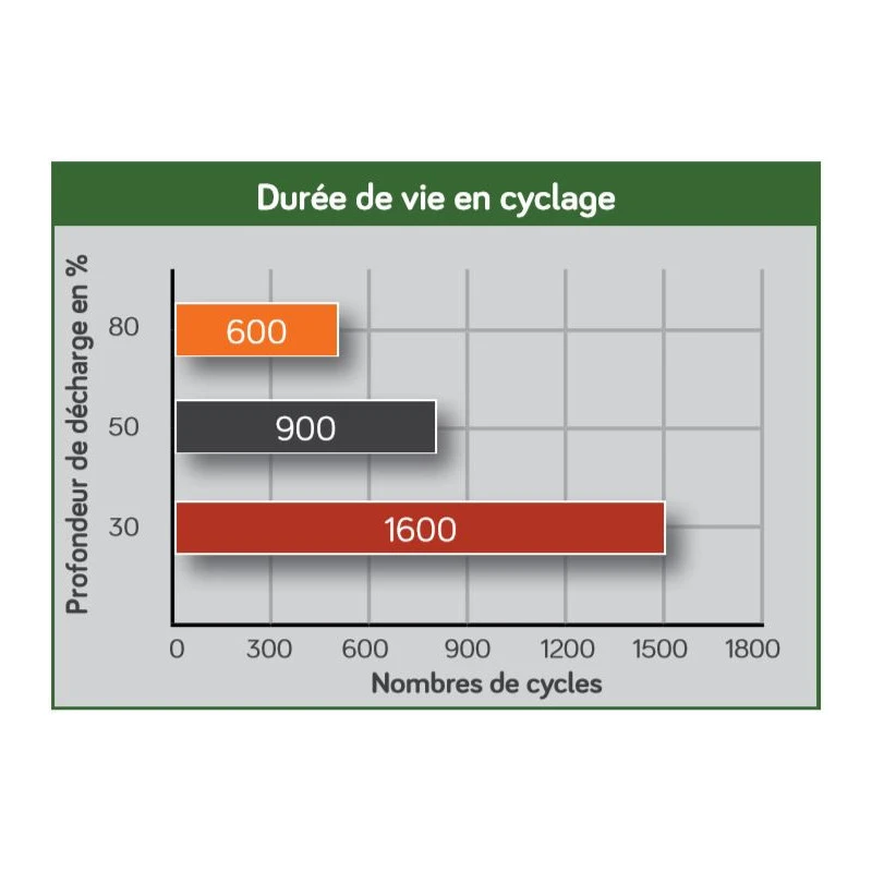 – Autonomie de + 300 cycles en comparaison d’une batterie AGM ancienne gĂ©nĂ©ration