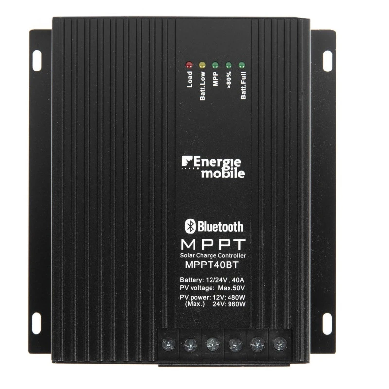 ENERGIE MOBILE propose ici un régulateur forte puissance 40A avec dernière technologie MPPT pour booster la charge de votre batterie, 15 à 30% de rendement en plus en comparaisons d’un régulateur ancienne génération.