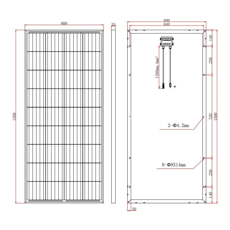 Loin d’être un produit entré de gamme ce panneau est rigoureusement assemblé sous un verre anti-reflet et sur un cadre en aluminium anodisé, pour la connexion électrique ce panneau solaire intègre un bornier avec diodes anti-retour et 150 cm de câble terminé par connecteurs MC4.