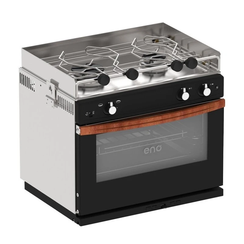 Le Allure de ENO est une gazinière marin, une cuisinière à gaz pour bateau avec une élégante poignée de four en bois et porte noir. Ce modèle est équipés de 2 feux, d’un four émaillé et ne possède pas de grill.