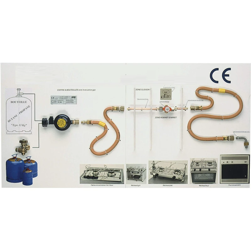 Kit répondant aux normes CE permettant de connecter les bouteilles de gaz CAMPINGAZ au réseau de gaz présent à bord des bateaux.