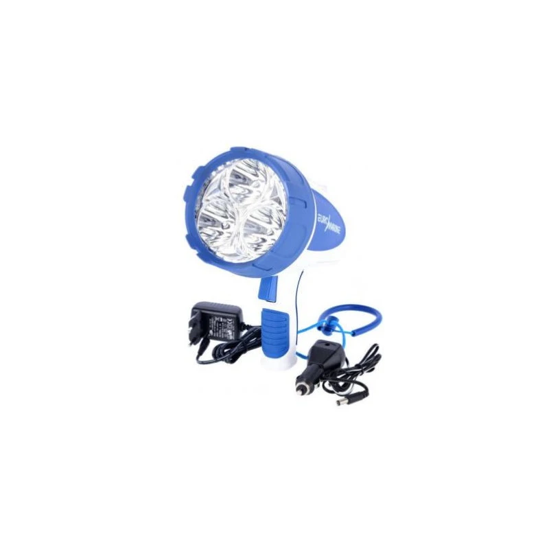 Puissant projecteur à main EUROMARINE avec ampoule LED et batterie intégré rechargeable sur 12V par prise allume cigare, idéale pour une utilisation en mer et en bateau.