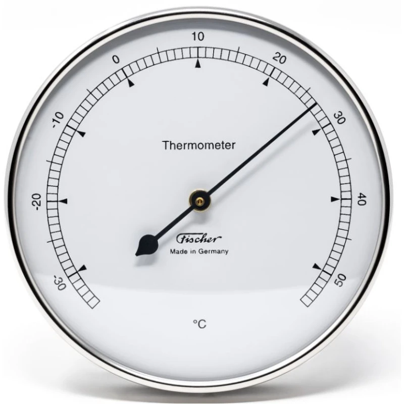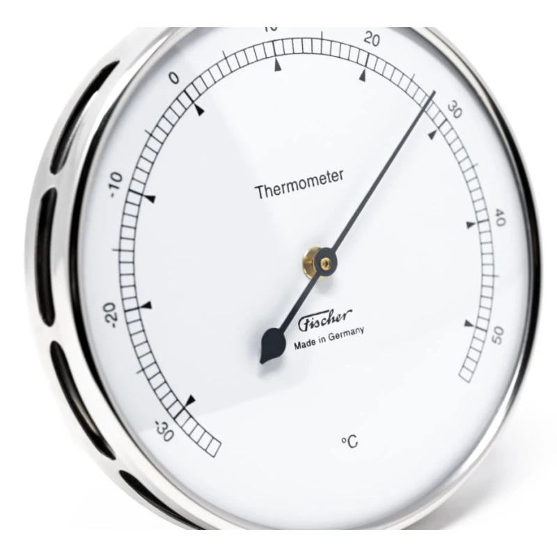 Thermomètre rond à aiguille et boîtier inox poli type marine pour bateau, cet équipement FISCHER est à la fois précis et très élégant parfait la maison.