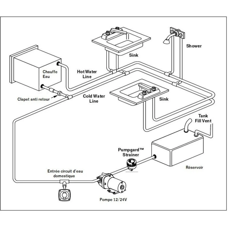 Spécialement conçu pour durer le groupe d’eau FLOJET R4405 est un groupe d’eau automatique avec corps de pompe 4 soupapes pour un débit fluide et constant sans vibration, cette pompe autoclave 12V très solide est équipé d’un moteur à aimants permanents et axe sur roulement à bille, elle conviendra parfaitement pour une installation sur le circuit d’eau potable du bateau, camping-car et fourgon aménagé jusqu’à 4 sortie d’eau (douche comprises).