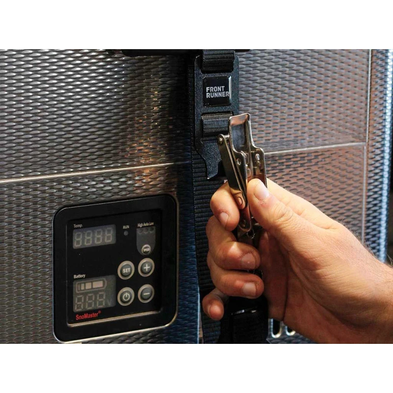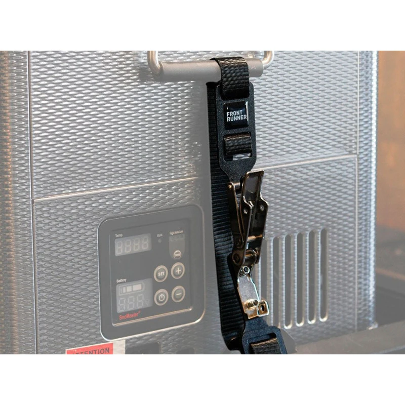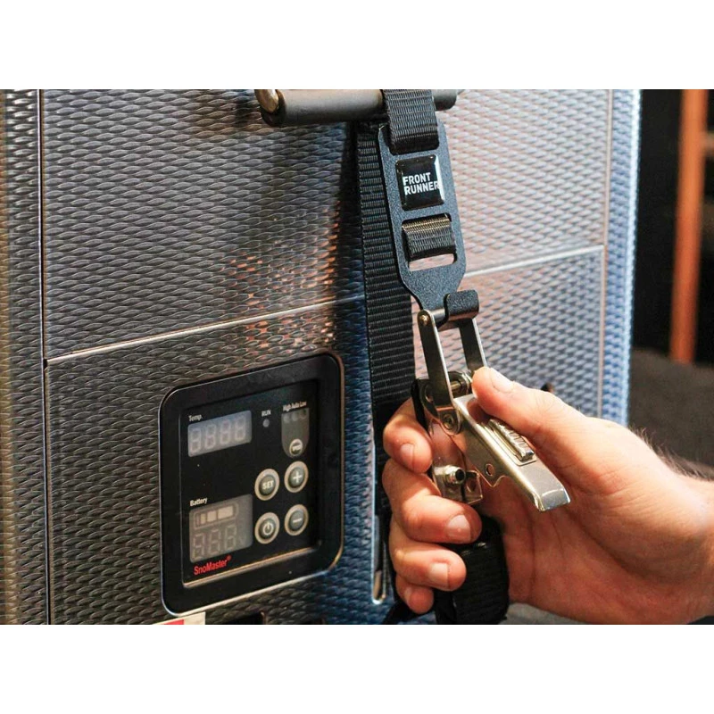 Paire de sangles de la marque FRONT RUNNER, de haute qualité avec une belle finition, elles vous permettront d’arrimer sereinement tout votre matériel à bord de votre fourgon : glacière sur tiroir coulissant ou équipement extérieur sur galerie de toit.