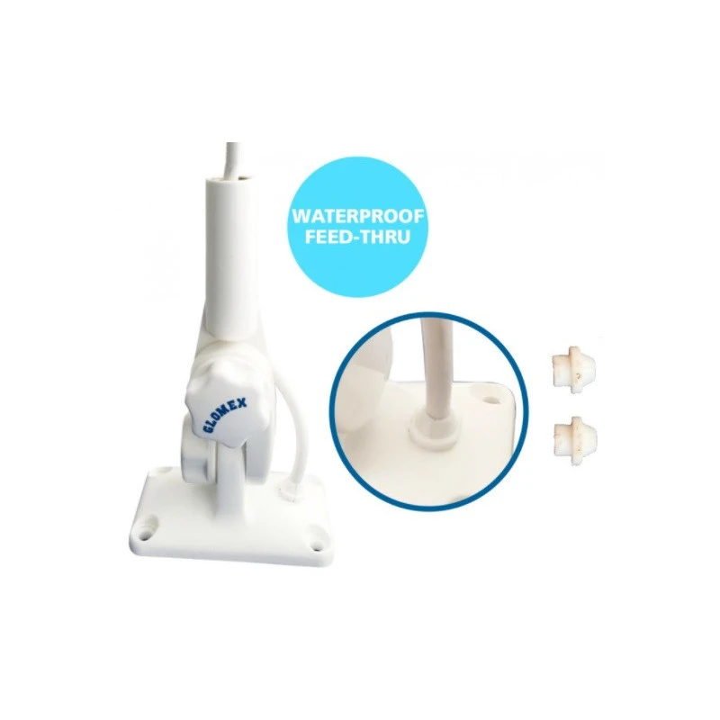 Le système GLOMEX Glomeasy est un système rapide de connexion d’antenne VHF et AIS sur le bateau, la rotule RA135 support plat pont est ici décliné pour recevoir les antenne Golmeasy et le câble coaxial RG8X Glomeasy.