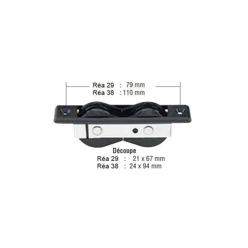 – Dimensions de découpe modèle réa ø 38 mm : 24 x 94 mm – entraxe 110 mm