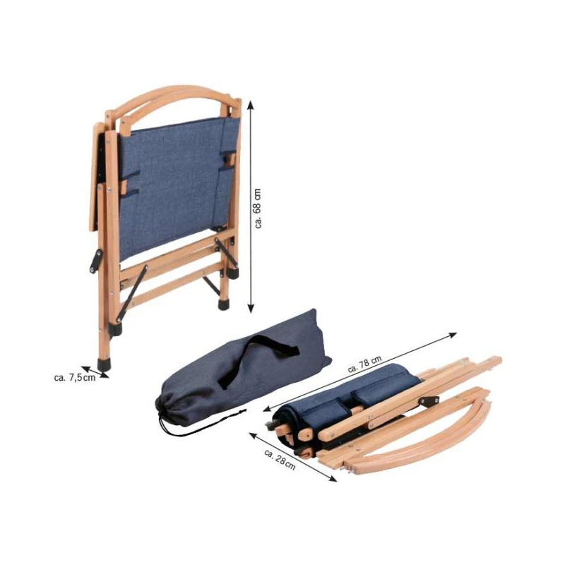 Son pliage novateur vous permettra de plier et de ranger rapidement votre chaise de camping HT. Son bois brut et sa toile bleue lui confère un design marin et contemporain.