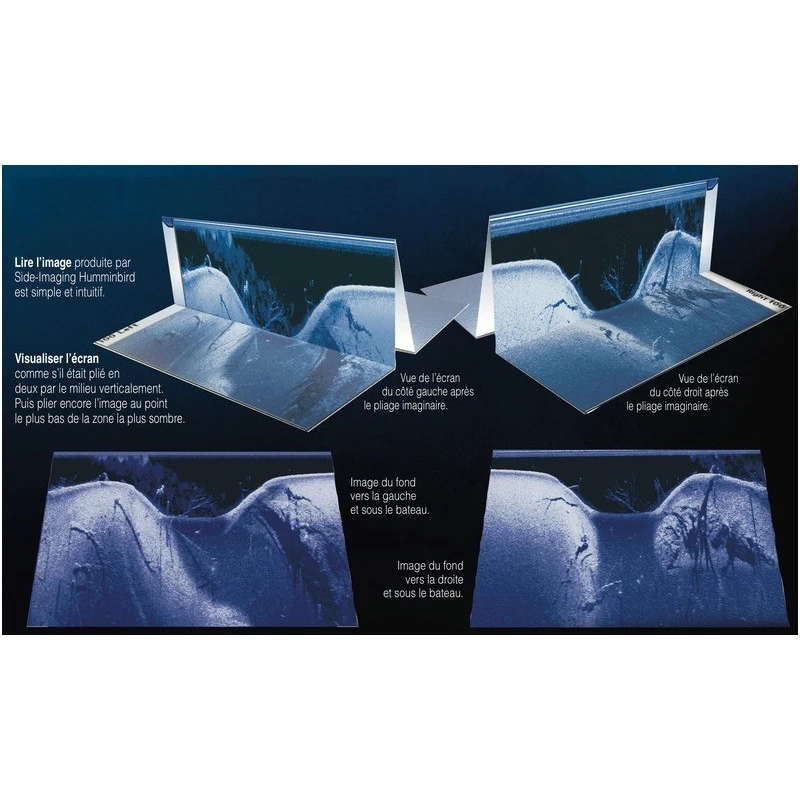 - Side Imaging® : Unique chez les sondeur de pêche HUMMINBIRD, le Side Imaging ® balaye les fonds transversaux au pêche-promenade, vous pourrez alors observer le relief sous-marins et prospecter vos spot de pêche encore plus facilement !