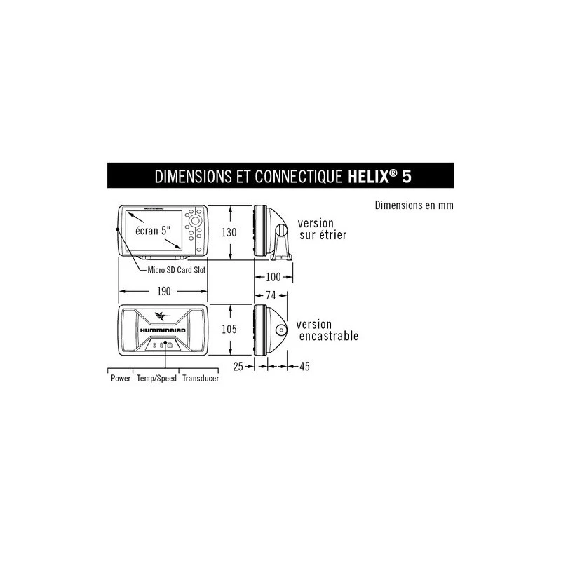 Depuis plusieurs dizaines d’années, HUMMINBIRD s’est imposé comme la marque de référence pour le sondeur de pêche et combiné sondeur-GPS. Ici vous est présenté le modèle le plus abouti d’échosondeur 5 pouces HUMMMINBIRD. Partir à la pêche avec un sondeur de qualité vous assure d’augmenter considérablement la prise de poisson trophée ! Partir en croisière avec un équipement nautique de qualité et simplifier l’électronique embarquée à bord du bateau avec un seul appareil.