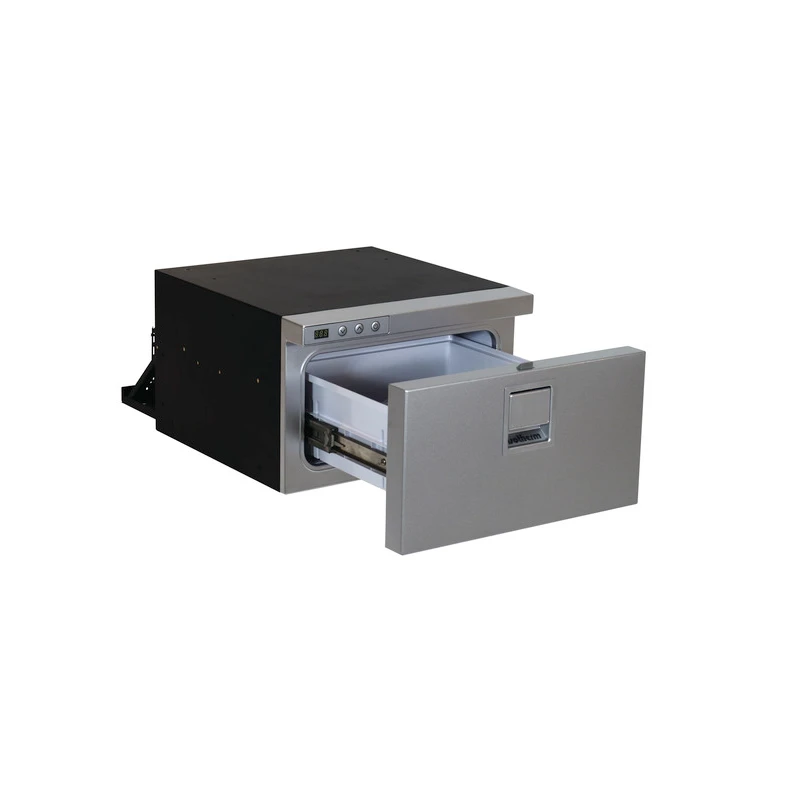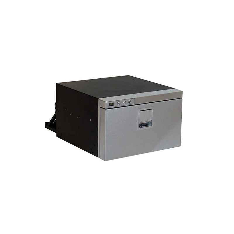 Moderne, le tiroir réfrigérant est doté d’une finition de haute qualité, la porte & sa protection anti éclaboussures IPX5 & les rails en acier inoxydable sont peints en argent. A ce design élégant, la solution réfrigérante présente les mêmes caractéristiques de froid qu’un frigo domestique. Fonctionnant avec une la technologie à compression, le groupe froid garantit une excellente production de froid pour une consommation électrique 12/24V très faible. Silencieux & performant, WEBASTO équipe son frigo d’un compresseur Secop BD Micro.