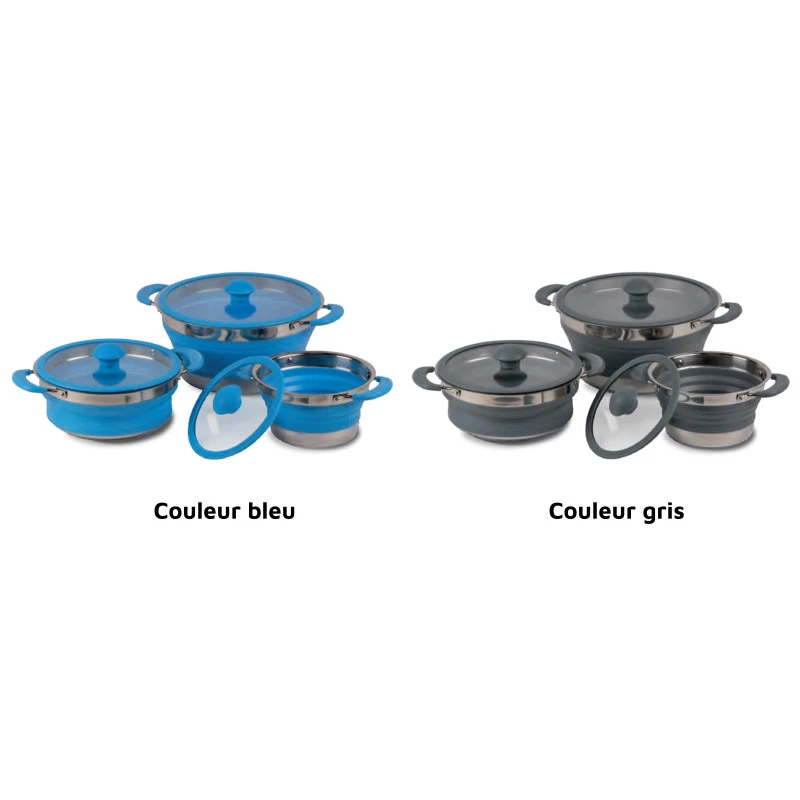 Vous souhaitez équiper votre cuisine mobile d’un set d’ustensiles pratique et coordonné ? Voici les KAMPA Saucepans ! Disponibles en plusieurs contenances, ces faitouts en acier inox et silicone se plient afin de rentrer dans n’importe quel petit placard ! Parfait pour faire votre popote dans votre camping-car, van aménagé ou en bateau !