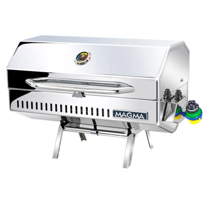 Le plus grand barbecue rectangle de la célèbre marque de barbecue tout inox pour bateau MAGMA, le Monterey est un barbecue gaz avec couvercle, allumage électronique, double niveau et thermomètre.