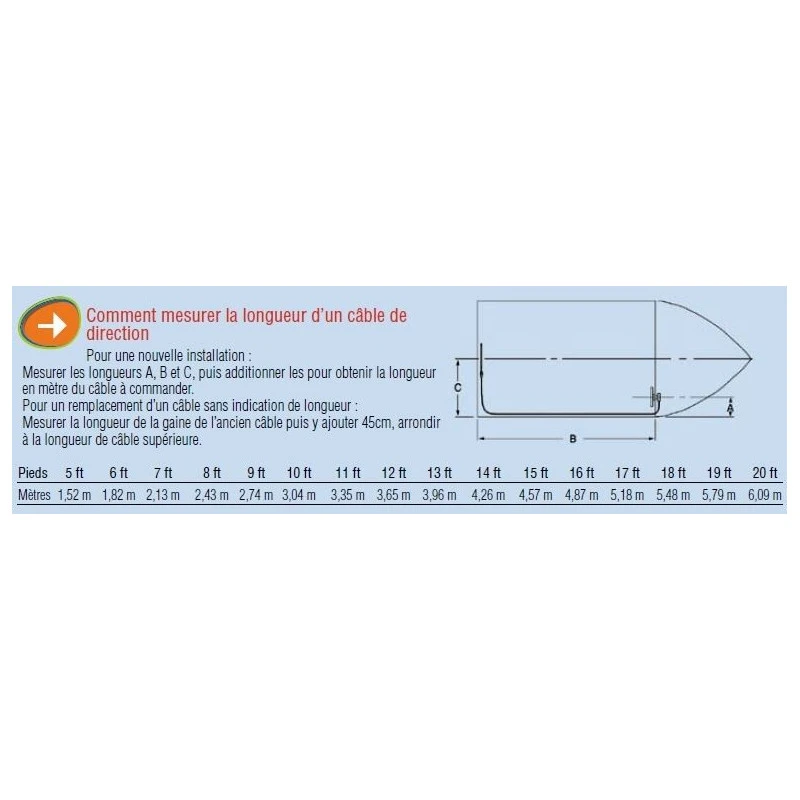 Caractéristiques techniques du MULTIFLEX Câble de direction SC-18 équipement moteur bateau :