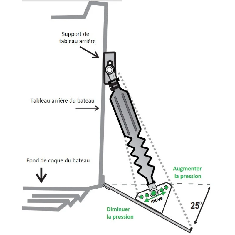 Le principe des stabilisateurs pour bateau moteur NAUTICUS Smart tabs SX est simple, un puissant ressort a gaz a l’azote réagie en fonction de la pression, plus vous accélérer plus les stabilisateurs NAUTICUS Smart tabs SX soulage l’arrière du bateau.