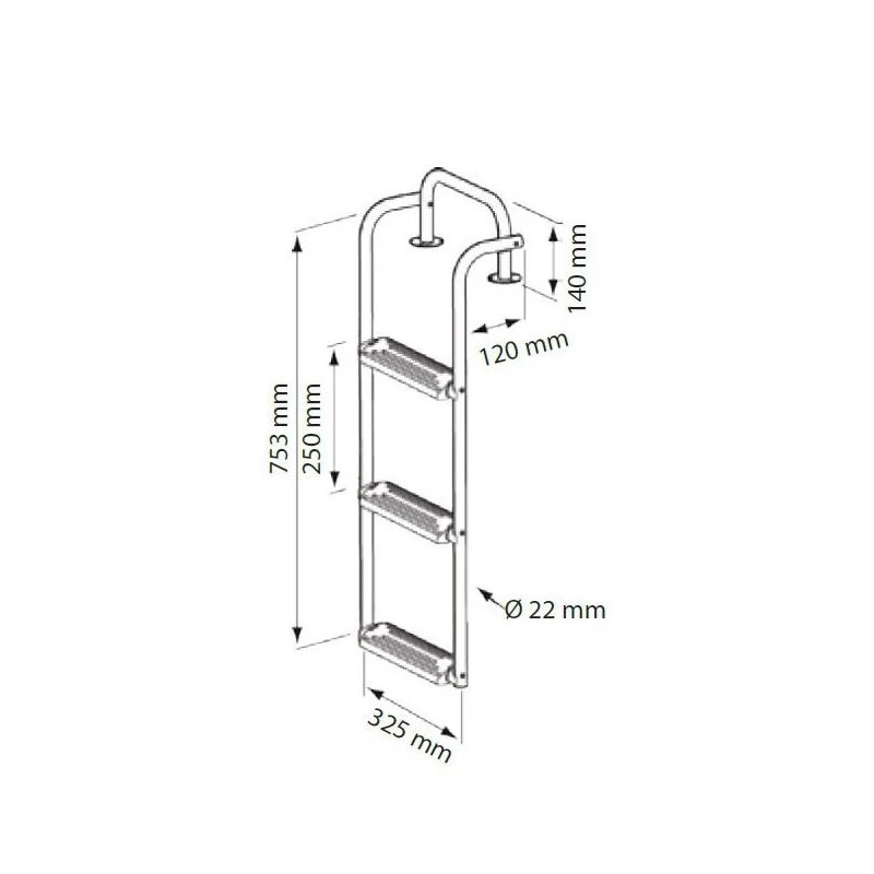 NUOVA RADE Echelle avec 3 marches anti-dérapantes et rabattable à 90 degrés conçue pour votre voilier ou vedette pour un embarquement et débarquement sûr.