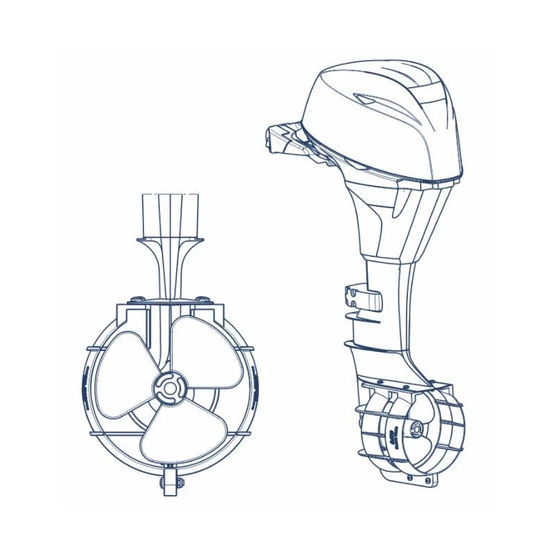 - Gain de contrôle : limitant la cavitation la protection hélice permet des virages plus serrés y compris à haute vitesse (présente un gros avantage pour les moteurs barre franche)