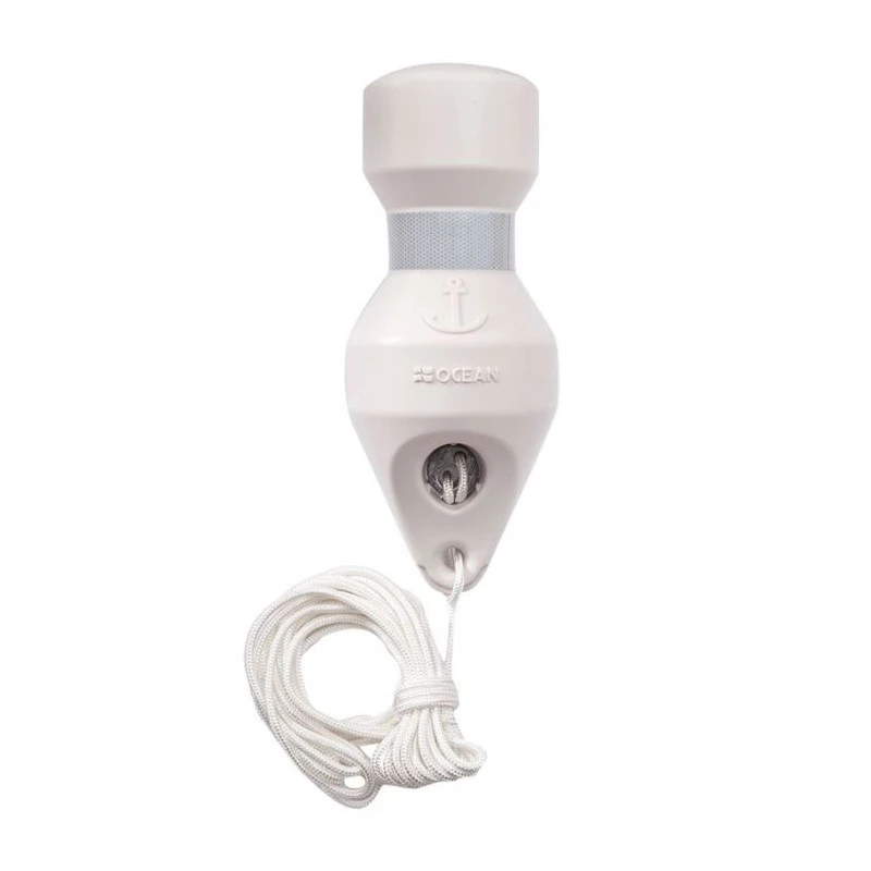 Doté d’un contre poids en plomb, il ajuste automatiquement la longueur du cordage dans des profondeurs entre 4 et 10 mètres. Fabriqué en polyéthylène, haute densité UV de forme conique, de petite dimension et de couleur blanche, il est facile de l’utiliser et de la ranger dans votre bail à mouillage.
