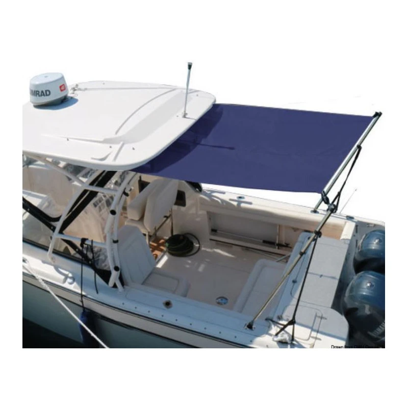 Fabriqué en tissus ATLAS au gramme de 300 g/m², cet équipement pour bateau est très résistant, la preuve il convient pour la navigation pour une vitesse jusqu’à 20 noeuds ! Très pratique donc, il s’agit en fait d’une extension, d’une sorte de store pour les T-Tops ou les timoneries venant recouvrir tout ou une partie du cockpit arrière du bateau. Cela vous permet de vous protéger du soleil ou de la pluie.