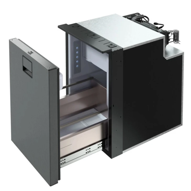 Le Cruise 49 Drawer de INDEL B est un réfrigérateur à compression 12/24V haute performance avec finition inox brossé ; de type tiroir pour le froid en bateau, fourgon, van aménagé et camping-car ! Capacité de 49 L.