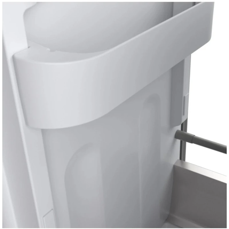 L’ergonomie d’abord, la porte s’ouvre donc à la manière d’un tiroir en avant vers l’utilisateur les gros avantages de ce système est qu’il est parfait pour les espaces réduit et que le fait de sortir les paniers en même temps que la porte facilite grandement l’accès aux denrées. Enfin à , la porte est en acier inox d’une superbe qualité de finition.
