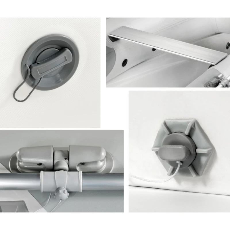 Cette embarcation est dotée de plusieurs éléments qui vous permettront de gagner le rivage en toute sécurité : poignées de portage, plancher antidérapant. La coque en aluminium simple en V pour permet de gagner en stabilité lors de vos déplacements sur l’embarcation.