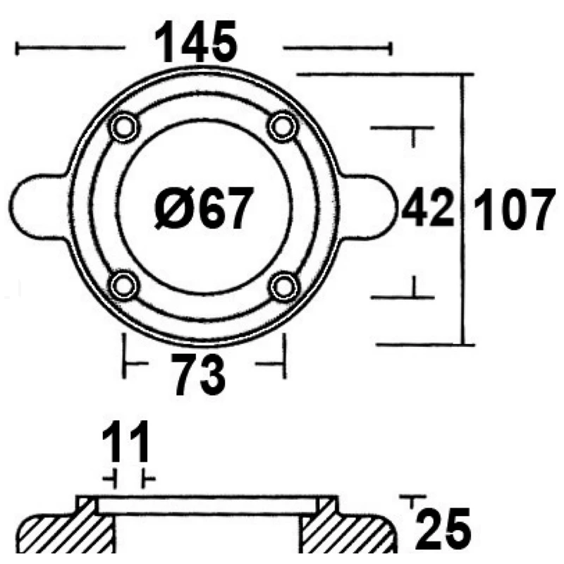 Caractéristiques techniques de l’anode en collier pour moteur Saildrive Yanamar OSCULATI :