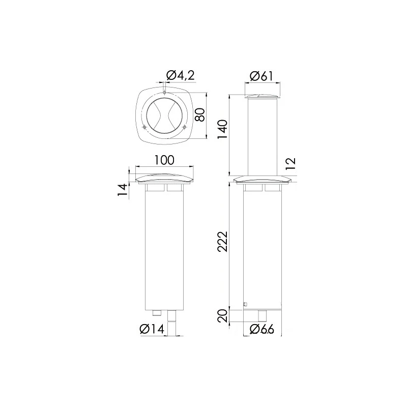 | Standard | 12/24 V | 7 W | 500 | 3000 K | Ø 66 mm | Ø 100 mm | 140 mm | 220 mm |