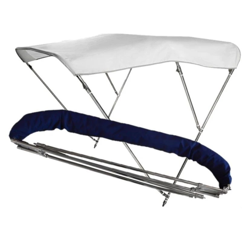 Livré complet et prêt à être installer, le bimini est fourni avec ses étriers de fixation pour plat-pont et garcettes de maintien pour les bateaux rapides.