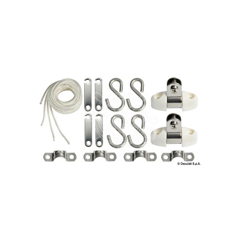 Livré complet et prêt à être installer, le bimini est fourni avec ses étriers de fixation pour plat-pont et garcettes de maintien pour les bateaux rapides.