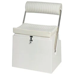Accessoire pour bateau avec une excellente finition de fabrication, cette banquette avec coffre est idéal pour les coque-opens et semi-rigide type zodiac. A utiliser comme siège pilote ou passager, la structure (le coffre) est fabriqué en fibre de verre. Hormis la banquette, toutes les autres pièces du fauteuil sont en inox.