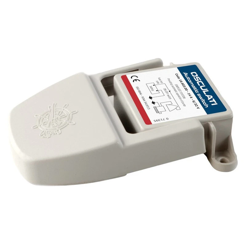 Interrupteur contacteur à niveau OSCULATI pour les pompes de cale ou alarme électriques des bateaux, se connecte sur la borne plus de la pompe. Ecologique, il fonctionne sans mercure.